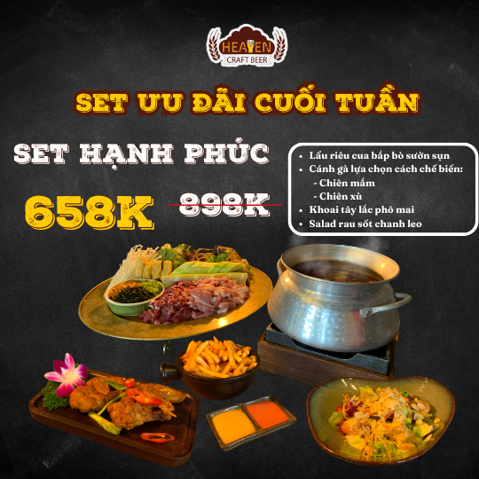 Đừng để cuối tuần trôi qua mà chưa khám phá những trải nghiệm ẩm thực độc đáo mà 𝐇𝐞𝐚𝐯𝐞𝐧 𝐁𝐞𝐞𝐫 đang chờ đón bạn! Với 2 𝐒𝐞𝐭 𝐔̛𝐮 Đ𝐚̃𝐢 Đ𝐚̣̆𝐜 𝐁𝐢𝐞̣̂𝐭 𝐆𝐢𝐚̉𝐦 𝐆𝐢𝐚́ 𝐋𝐞̂𝐧 Đ𝐞̂́𝐧 𝟐𝟓% vào cuối tuần, 𝐇𝐞𝐚𝐯𝐞𝐧 𝐁𝐞𝐞𝐫 hứa hẹn mang đến cho bạn trải nghiệm ẩm thực tuyệt vời nhất!